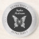 Anpassa den här diamantfjärilskonstruktionen med ditt namn i vit text på silver metall med svart cirkelbakgrund. Två svarta extra-linjer har tillhandahållit för favorituttryck eller tar bort dem. Klicka på Anpassa om du vill ändra färg och skriva stilar.