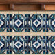 Den här keramiska plattan, som återspeglar hur känslig Art Deco-designen är, har en träffande diamantmotiv i mitten, framtagen av vinkelrät linjer och ett blått spektrum, från det lättaste himlar till den djupaste marinen. Elfenben och grädde korsar varandra med blyerna, skapar djup och sofistikering, medan det metalliska linjerna i guld ger en lyxande kontur som fångar kärnan i erans ikoniska stil. Trots det komplexa utseendet har plattan en slät yta på grund av den avancerade tryckteknik som används, som erbjuder både synintrighet och praktisk användning för contemporary.