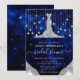 Elegant Silver Diamond Dress med Silver Bokeh String Ljus och Glitter Glam Kant på en blå fantasi-galaxstjärnornas bakgrund