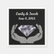 En klassy och elegant silver om ett svart bröllop-tema som bygger på en stor diamant och en uppsättning omfamnande diamanter som omfattar händer. Den här designen är lätt att personlig och ge anpassade. Du kan ändra teckensnittstyp, storlek och färg, plus färg i bakgrunden. Lägg till annan egen text eller kanske använda för en diamant bröllop-årsdag.