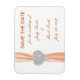 Detta vackra spara datum magneter är en snyggt, ett långvarigt sätt att tillkännage er stora dag. Anpassa magneten genom att ändra texten i fält. Du kan ändra teckensnittet stil, storlekt och färg, samt ändra färgen i bakgrunden med knappen Anpassa.