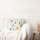 Dekorativ kudde har en modern utformning av lodrät linjer med diamanter och bomeranger i mitten av århundradet, med stjärnsprängningar spridda i bakgrunden.