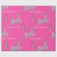 Denna färgstarka, rosa julomslutning pappra präglar ett rosa mönster av diamantmönstrad renar med gnistor, med modernt silver Julgranar och God jul hälsning i vitt.