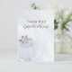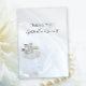 Tack till gästerna efter en elegant förlovningsfest, möhippa eller giftermål med eleganten Square Diamond Ring och Pillar Crystal Bröllop Flat Tackkort. Den här anpassningsbarna nuptial tackkort har ett nära foto av en klar kristaller av sten kvartspart med en fyrkantig prinsessa klippt diamant förlovning ring med vit möhippa i bakgrunden. Rensa kvarts kallas också "master healer" och "power" och sägs öka all energi eller alla avsikter och gör en unik förbättring eller komplettering till din bröllop-dekoration eller ditt tema.