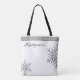 Briderna har mycket att bära, och denna vackra snowflake i diamanten är perfektens tillbehör för all verksamhet i bröllop. Den har en vit bakgrund med diamant snöflingor och bröllop-datumet på ena sidan och bridens namn på den andra. Denna väska kommer att bli en välskattad keepy i flera år efter bröllop.