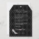 En Kärlek-artikel slutar aldrig svartvit Bröllop Theme Diamond med ruby accated kärlek-knapp binder klämman monogram och mörk-satin tuxedo-trim. En artikel i kärlek slutar aldrig typografi med en symbol för diamantglasskor med passande rubyemblem på baksidan. Snygg svart diamantsammet ser bakgrunden med ett vältaligt tack.