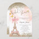 Elegant gold diamonds, butterflies, and the Eiffel Tower with bow on a white background. Personalize the text template with your event details. This invitation is available in both printed and instant download digital formats for your convenience.