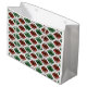 Mönster i grafiska diamanter. Röd och grönt, med lite julklapp. Elegant och blankt! Du kan ersätta den vita, heltäckande bakgrunden för nya effekter, men den kan se bäst ut på vitt.