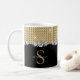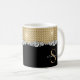 Diamanter Guld Black Elegant Shiny Monogram Anpassningsbar Coffee Mugg. Glamorös design med glatt metallisk utseende från guld och ett anpassade monogram åtskilt med vackra glättdiamanter. Underbar för att du ska få på dig ditt halsband! Den här utformningen är feminin men ändå sofistikerad!