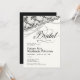 Ett modernt, elegant och klassi inbjudningskort för möhippan med svart bakgrund, pärlsträngar och glitter (digitalt) och modern typografi i pärlvitt, liksom ett känsligt snöre gräns. En chic med "snöre och pärlor"-design för en brud som ska skrapas.