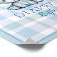 För Diaper raffle bord vid din babydusch. Cute grått har en baby blue täckfilt med sydda täckblad. "Diaper Raffle" text.