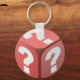 Den här designen är en dice med frågetecken. Disen är röd med vita frågetecken på den. Den här disken med frågetecken ser underbar ut i den här nyckelkedjan