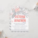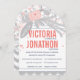 Die cut Coral Grått and Navy Blommigt Fauna Bröllo Inbjudningar