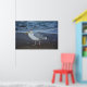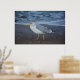 Eine Seemöwe am Sandstrand vor einer Welle an der Nordsee Küste