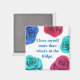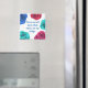 En fyrkantig kylmagnet i vitt med färgat ro på den i blues och nyp. I texten står det: "Jag kärlek själv mer än vad som finns i kylskåpet."
