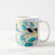 Fluid turquoise and soft coral tones ripple across this mug like waves meeting petals. The design evokes coastal calm and blooming renewal—a refreshing companion for any beverage. A thoughtful gift or a creative way to infuse art into your everyday rituals.