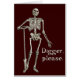 Bild: Teckning i ett skelett med en skiva, taget från Andreas Vesalius ’De human corporis fabrica’ (1543). Text: Digger, snälla. Lustigt shovel bum t-shirt för mjältkrusar som är villiga att åka dit med en riktigt dålig pun.