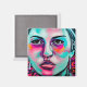 Art Magnet. Kvinnokonst i ansikte skapade konst i Urban. Nära ansikte. Teal, vit, rosa och svart färg.