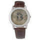 Digital Guld Bitcoin Logotyp Classic Brown Leather Armbandsur