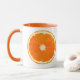 Kaffe mugg i en Retro Modern digitalmålning av ett segment av saftig orange - enkel, fruktig renovering