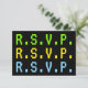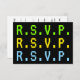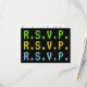 Den här smarta OSA kort har meddelandet "R.S.V.P." på framsidan. Det innehåller också ett formulär för OSA av personlig på baksidan för att mottagaren ska kunna slutföra åtgärden. OSA kort som detta skulle kanske kunna användas för att ta reda på vem som kommer att delta i en möhippa, en födelsedagsfest, en babydusch eller något annat firande.