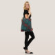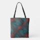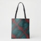 Digitalt tvinnat nät av dusch-cyan-tråd över rött tygkasse
