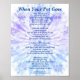 Denna poster skulle kunna utgöra en del av ett särskilt minnesutrymme i ett hem för ett uppskattat husdjur. Alternativt skulle man kunna se det på ett rädda djuren/adoptionscentrum, eller i ett farrum på en veterinär, för att hjälpa sörjande husdjursägare när de arbetar genom sorg att förlora ett sällskapsdjur.