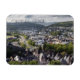 Aereriellt utseende av Oranienstadt Dillenburg, en stad i Heses Giessen-region Tyskland. Infångad från slottet backe med den gamla staden i förgrunden, badad i härligt kvällsljus. En underbar souvenir från resa till Hessen.