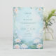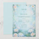 Bjud in dina nära och kära till en lugn och stilla vattenparadis med denna utsökt renderade digitala botaniska layout. Denna design har lysande vita vattenliljor och lotusblommor med mjuka rosa nyanser på kronbladen och livfulla gula centra som flyter graciöst på en yta av mjuka blå vattenkrusningar. Kompositionen ramas in av frodiga gröna näckrosblad och en delikat kaskad av små vita blommor och knoppar från de övre hörnen. Mot en drömsk, dimmig blå bakgrund med mjuk bokeh-ljus och en subtil guldfärgad kant fångar detta konstverk en fredlig och romantisk stämning med fantastisk klarhet. Denna eteriska akvatiska scen är ett utmärkt val för ett sommarbröllop vid en sjö eller en sofistikerad utomhusceremoni i en trädgård. Den svala, dimmiga blå och vita paletten gör den till ett felfritt val för en elegant brudshow, ett stillsamt förlovningsmeddelande eller en drömsk morgonbröll