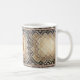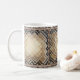 Den här abstrakten, ett grafiskt foto, förvandlades till en exotisk, monogramdesign som liknar en turkisk matta som visas i, glödande färg av, taupe, brons, tan, gult, vit och svart.