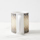 Den här abstrakten, ett grafiskt foto, förvandlades till en exotisk, monogramdesign som liknar en turkisk matta som visas i, glödande färg av, taupe, bronze, tan-gult, vit och svart.