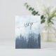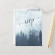 Dessa vackra RSVP-kort har en bergsskog med blå tallar insvepta i dis eller dimma och elegant, kalligrafisk skrift som lyder RSVP. Baksidan av kortet är ett formulär som dina gäster fyller i och returnerar med svar om de kan komma eller inte, hur många gäster de har med sig och deras val av måltid. Det finns också plats att fylla i en webbadress så att dina gäster kan svara online om de föredrar det. Rustika och enkla men ändå klassiska och vackra.