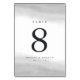 Ett kort med enkelt bordsnummer och chic i mjuka skuggor av grått och vitt har en vattenfärg som tvättar överst och grund och som framkallar dimrullningens utseende, med bordsnumret i svart kol. Anpassa med namn och bröllop-datumet. Utformningen upprepas på baksidan. Koordinerar vår Mist-bröllopssvit.