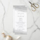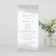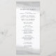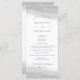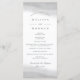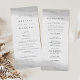 Vårt eleganta bröllopsprogram har detaljer om er ceremoni i en rik, svart kolgrafit, accentuerad med genomskinliga grå akvarell-tvättar högst upp och längst ned. Baksidan listar medlemmarna i er bröllopsfest med lättredigerbara textfält. Koordinater med vår Mist bröllopsinbjudningskollektion.