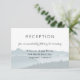 Bergsbröllop inklusionskort för en mottagningsadress. Blå och grå design med bergskedja och tre platser för anpassad text.