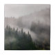 Detta foto presenterar en skog i bergen som täckas i mist och dimma.