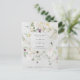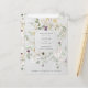 Detta fantastiska bröllopskort för att spara datumet har en spridd bukett av vackra, ömtåliga vildblommor i ljust salvia grönt, taupe och lila, med matchande geometriska accenter och kalligrafi på en mjuk, grå, texturerad bakgrund. En elegant och stämningsfull design.