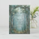 Denna design inbjuder dina gäster till en värld av tyst magi och djup serenitet. En invecklad, mörk metallisk valv med delikat filigran inramar en hisnande utsikt över en dimmig skogsväg. Slanka, höga träd sträcker sig mot en disig smaragdgrön himmel, medan mjuka vita blommor och frodig grön lövverk skapar en flerskiktig, målerisk textur. Den stämningsfulla teal- och grå färgpaletten frammanar en high-fantasy, romantisk atmosfär som känns både urgammal och tidlös. Som bröllopsinbjudan är denna design ett magnifikt val för en mystisk utomhusceremoni, en gotikinspirerad skogsförening eller en storslagen sagofest. Den sätter en of