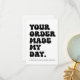 En modern beställning gjorde min dag till noterare för dina småföretagskunder. Med ett trendig-återningsteckensnitt på framsidan och meddelandet "Jag hoppas att paket gör din dag". Baksidan är en tom helvit för att du ska kunna lägga till egna handskrivna anteckningar till kunden.