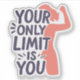 Motiveringsmärke för studenter och kvinnliga företagare. Lila text och citattecken: Din enda gräns är du. En bild av en stark kvinna.