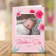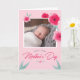 Vacker unik första mors dag gratulationskort med vackra rosa blommor och lägg till ditt favoritfoto.