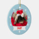 Den här vackra julprydnaden kan anpassas med namn i din kanin och ditt kaninfoto. Snöflingans design visas på framsidan och baksidan för att göra en söt prydnadsföremål för din speciellare bunny. Upphovsrätten tränar i Tuxedo-katten