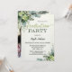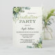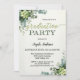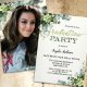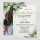 Elegant examensfest inbjudan med ditt eget foto med en bladöverlägg på baksidan. På framsidan finns din anpassade text med en grön skript rubrik och en modern vattenfärg grönsak design.