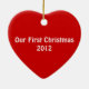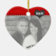 Denna hjärtaprydnad är perfekt för par tajmar först fira jul tillsammans! Personifiera med din egna foto- och förnamninitialer på bekläda. De tillbaka något att säga "vår första jul" och året, men du kan ändra denna till något att säga vad du skulle något liknande eller lämnor, som är! Designen presenteras på en hjärtaprydnad med röda brytningar.