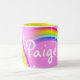 Ljus och färgglad regnbåge ungemugg "för ditt namn". Perfekt gåva för ett vibrerande barn. Muggen läser: "Personifierar Paige" eller denna mugg med namn av dina primaa upp till 5 brev. (*** Please noterar några namn ska inte alltid färdigt tack vare naturen av stilsorten. Mugg som är designad exklusivt vid Sarah Trett.