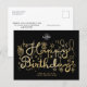 Anpassa det här unika originalhandsskrivna Business Grattis på födelsedagen-vykortet med faux guld-text och roligt doodle hand plockade Födelsedagsfest dekoration inslag på svart bakgrund. Observera att guld i denna utformning är ett platt gult beige färg och inte en verklig metallfolie. Ändra "logotypen här"-bilden med logotypen. Upprepa baksidan. Glöm inte att även anpassa texten på framsidan och baksidan, den innehåller all din kontaktinformation för företag. På så sätt fungerar detta vykort också som ett roligt-företag som kompletterar ett profilkort. Den svarta bakgrunden färg är anpassade och kan ändras till vilken annan som helst för att matcha ditt program för färg. Grattis på födelsedagen vykort för perfekt professionell, företag eller kontors- och kontorsgrupper, med varm känsla för anställda, affärspartner och kunder. Den här produkten är en mall för enkel anpassning av onlinen.