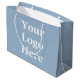 Du kan ersätta visningen med logotypen på den här baby blue väskan. Bilden finns på båda sidor om påsen. Det finns inga minimum för den här väskan.