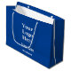 Du kan omvandla varje kundköp till en marknadsföring-affärsmöjlighet med en märkbar shopping bag. Det här blå shopping bag har ett ställe för att lägga till ditt företags logotyp, företag namn och webbplats. Texten är vit.