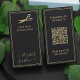 Lyxdesignen med guld sax silhuette för att anpassa den med ditt namn, QR-kod och text. Ta med dig den här unika svarta utformningen och skrivan på detta kort med en vit eller gyllene bläck-penna.