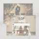 Den här designen har ditt foto som huvuddesign för inslag. Mallen är inställd för att tona fotot så att du får ett tvättat utseende och typografin kan stå ut. Rustik typografi används för titeln. Du kan välja mellan att använda två separata foton, ett för framsidan och ett för baksidan av designen. Konstruktionens unika karaktär är att slutresultatet av designen är upp till dig, eftersom du anger bakgrundsbilden bilder. Rustik och elegant-bröllop OSA-svarskort. Det finns också möjlighet att matcha bröllopsinbjudningar och andra artiklar i kontorsartiklar.